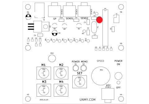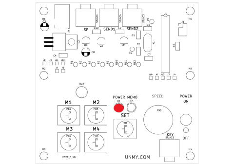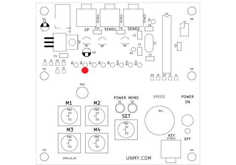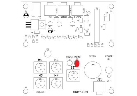 MEMOはSETキーで緑ランプ点灯でパドルで(P1)で”希望文字”SETキーONで確認SETキー押す緑ランプ消灯PB4ボタ押すでP1文字送出